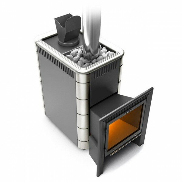 Дровяная печь-каменка экспертного класса Гейзер. С этой печью пар будет действительно легким. Через специальный дозатор вода попадает в закрытую каменку, прогреваемую пламенем со всех сторон. В ней вода нагревается, закипает и превращается в насыщенный пар-аэрозоль, который, быстро расширяясь, заполняет всю емкость закрытой каменки. Не находя выхода из каменки, под нарастающим давлением он устремляется в трубу. Проходя через раскаленную пламенем трубу, пар еще больше разогревается и разгоняется до большой скорости. Сильная струя кипящего, насыщенного пара-аэрозоля с большой скоростью врывается в дополнительную каменку, пронизывает весь ее объем, проникает в самые глубокие и горячие уголки. Струя многократно разбивается о горячие поверхности большинства камней, превращая содержащуюся в ней влагу в сухой и легкий пар.